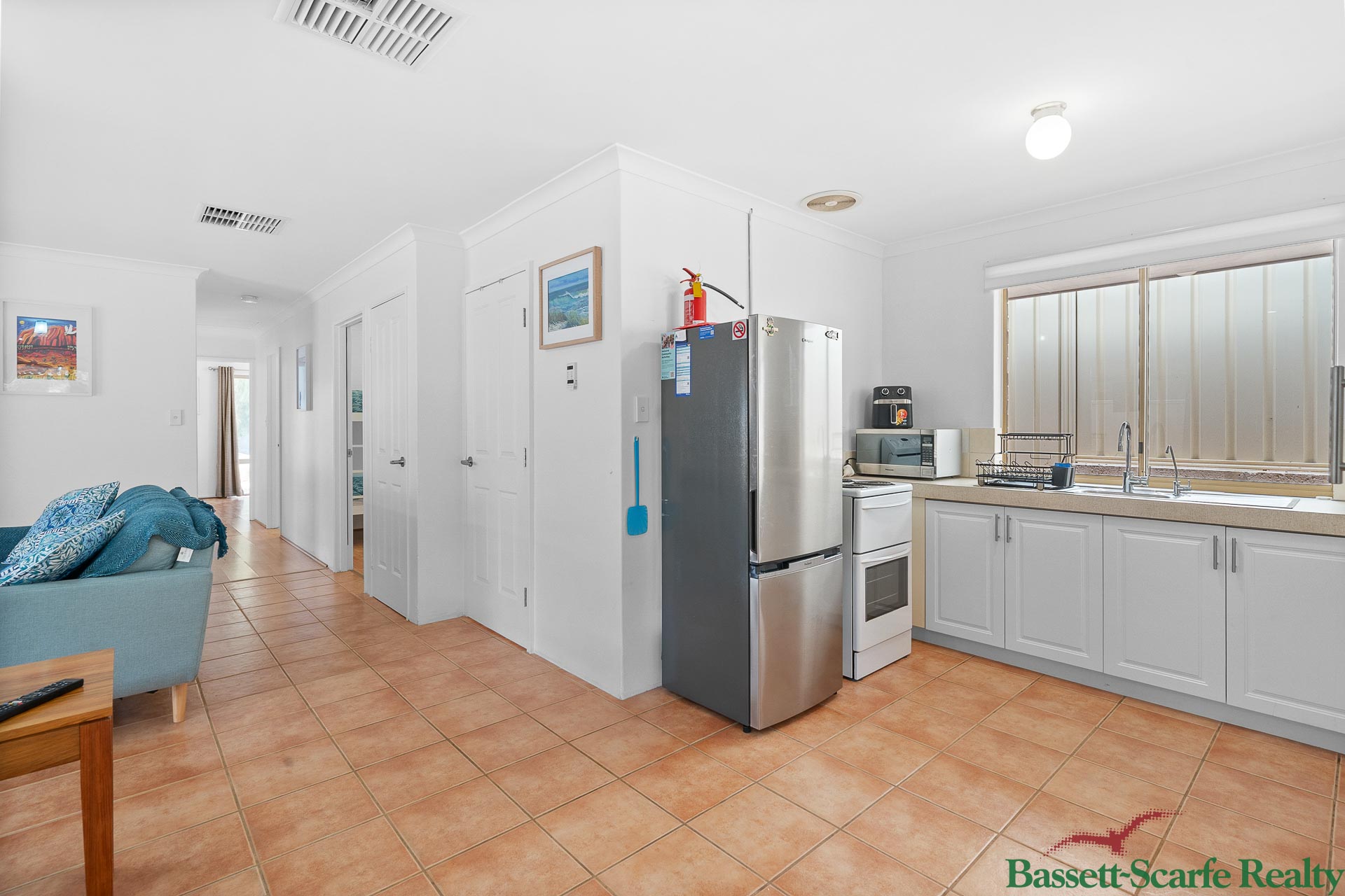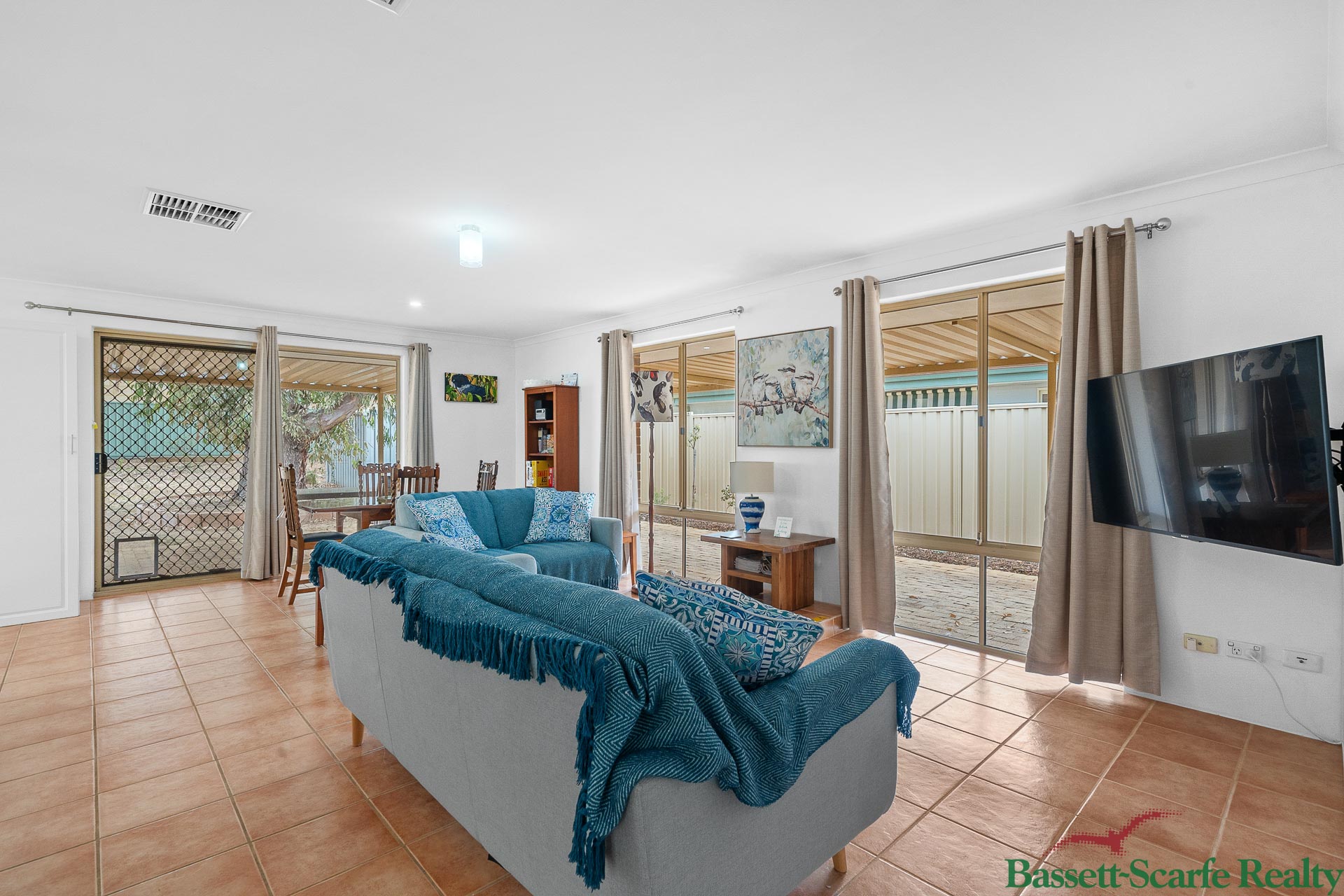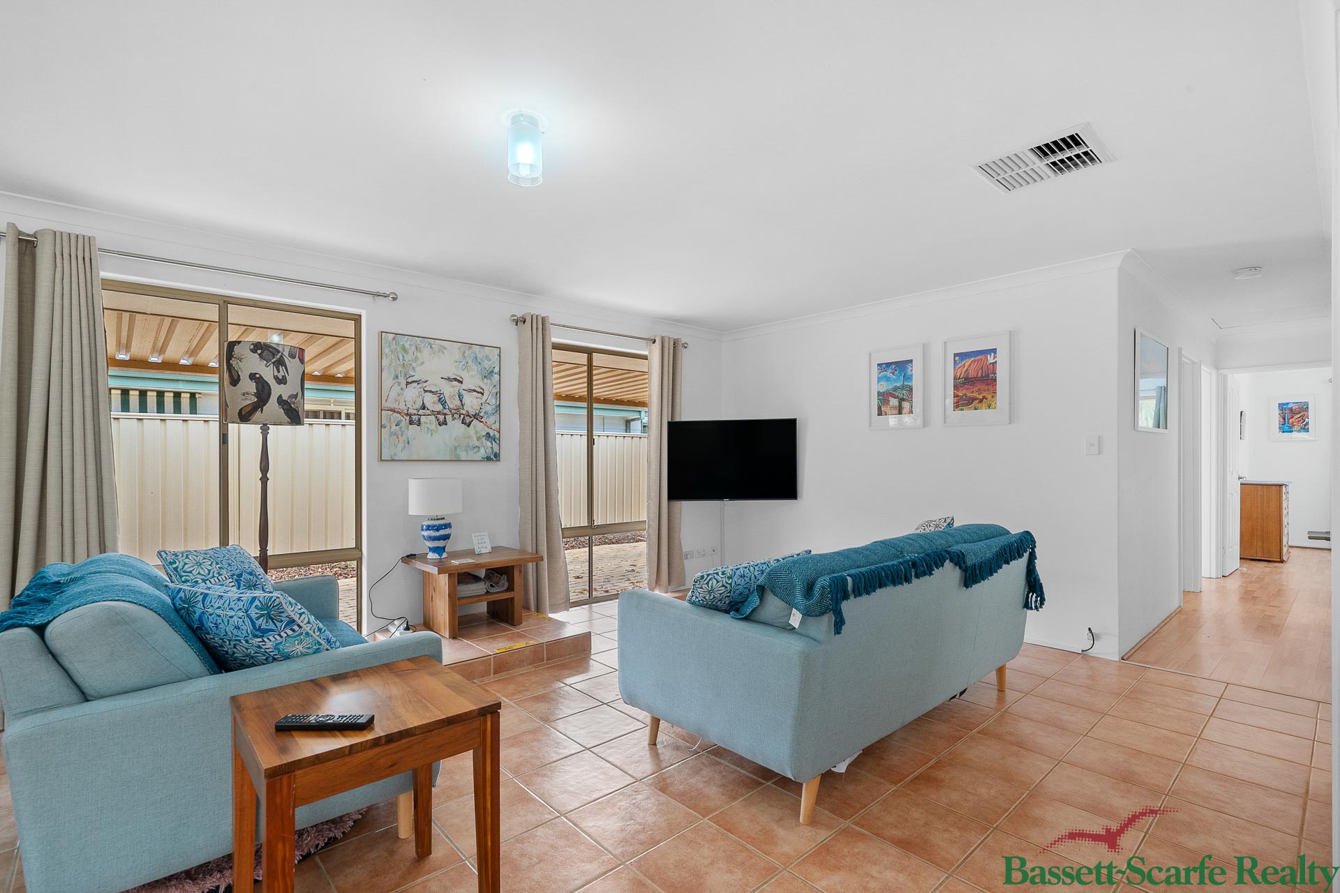 Inside features a spacious open plan living and dining area with a cosy fireplace for winter and air-conditioning throughout for year-round comfort. The home offers three good-sized bedrooms, a separate front living area ideal as a second lounge or kids’ playroom, a practical kitchen with ample cupboard space, and plenty of natural light throughout.